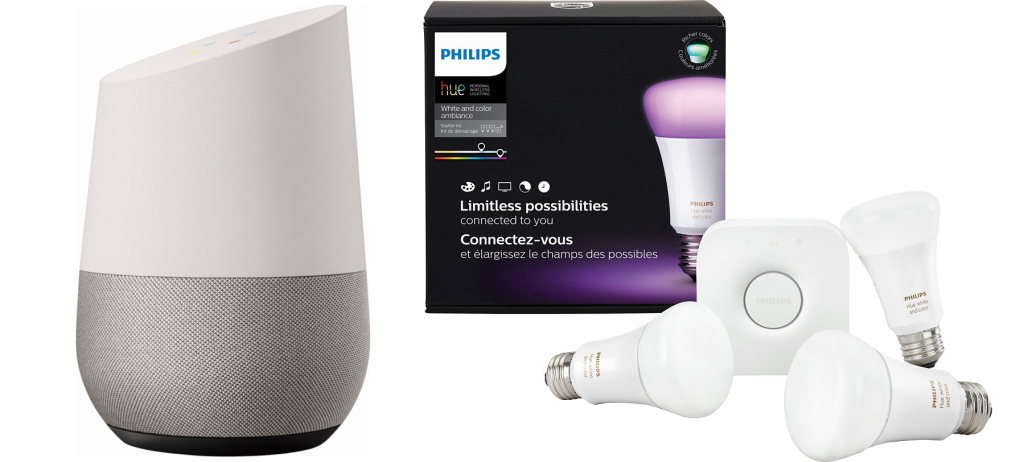 Head on over to Best Buy where you get this Google Home AND Philips Hue Color Starter Kit Package for only $178.99 shipped!