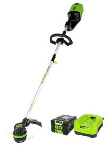 GreenWorks Pro 80V System offers a range of commercial grade tools for the professionals and those who just want more power. This 16-inch cordless string trimmer features an front mount motor for versatile use. Light weight and easier to use, it has a variable speed trigger for power on demand, 14/16-inch cut path, .080 line diameter bump feed and die cast gear box for durability. Designed for durability and heavy duty jobs, it features a brushless motor that delivers the power and performance of a 32cc gas engine. With an extra battery on hand, you can now rip through weeds in neighborhood without the hassle of gas. Compatible batteries currently include a 2ah (model GBA80200) and 4ah (model GBA80400) battery and rapid charger (model GCH8040). The 2ah battery charges within 30 minutes so you can get back to work and finish that job. The 4ah battery charges within 1 hour.