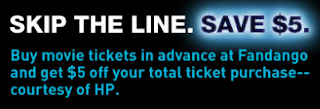 Through 4/30 (tomorrow!), HP is teaming up with Fandango to give you $5 off your total ticket purchase. This offer is good once per email address and the Fandango convenience fee of $1.25 does still apply. But, if you and a friend each buy your tickets through this offer you can definitely save!