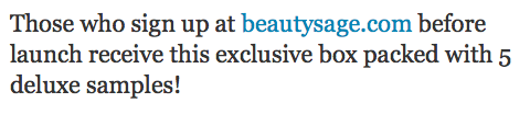 In the past day or so, you signed up at BeautySage for a sample box offer. As we care deeply about our customers, we wanted take a moment to clarify the offer.