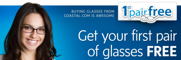 Fine Print: This promo is for first time Coastal.com glasses customers only; One free pair of glasses per customer; Certain frames are NOT eligible for the promotion (if you see a “Coupons not applicable” message on a pair of frames, then it is excluded from the promotion);1.5 index lenses included for free; lens upgrades including higher index lenses, progressives, Transitions, polarized and all lens coatings are available at an additional cost; shipping and handling costs apply; cannot be combined with any other offers; valid for residents of the USA only