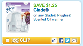 Hurry over to coupons.com and you can print this $1.25 off any Glade Plugins Scented Warmer coupon.