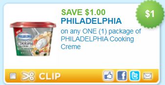 Take $1 off any one package of Philadelphia Cooking Creme! This stuff is great to change up your recipes! Very tasty to make a creamy pasta sauce — so many possibilities!