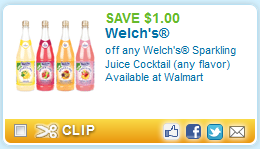 Coupons.com has a coupon for $1 off any Welch’s Sparkling Juice Cocktail — any flavor! Walmart has this at just $2.48.