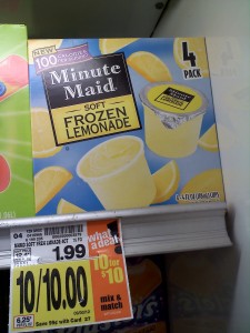 This week Kroger has the Minute Maid Frozen Lemonade on sale for $1 — use the $.50/1 Minute Maid Frozen Treats coupon here (zip 43420 as needed) — doubled to $1 = FREE!!