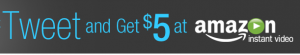 - Automatically follow @amazonvideo and @amazon_movies. A message stating that you got your $5 credit to Amazon instant video will be automatically tweeted from your Twitter account.