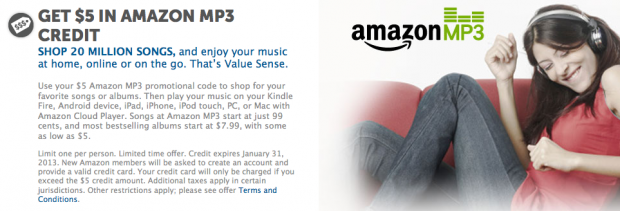 Once you have clicked that you will be taken to a page where you can get a code for a FREE $5 Amazon MP3 Credit!! From that page you will see a link to be taken to Amazon and you can enter your unique code for the $5 credit!