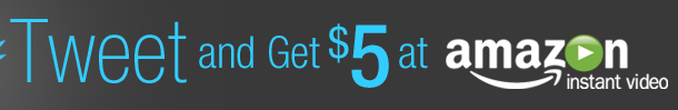 If you have a Twitter account (or sign up for one! It is free!), you can send a tweet and get $5 credit at Amazon Instant video!