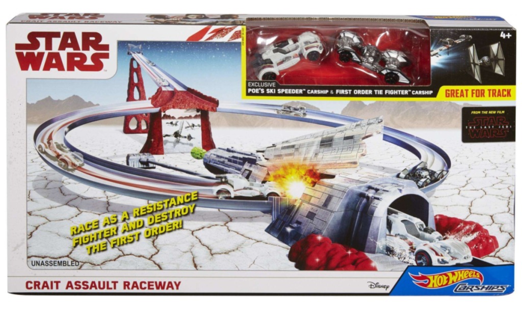 Run over to Walmart where you can grab this Hot Wheels Star Wars Crait Assault Raceway Track Set for only $15.99 (regularly $27.95).