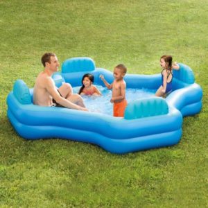 This pool is ideal for any backyard and features room for up to four and can hold as much as 221 gallons of water. It also has comfortable backrests and cushioned seats, so it’s easy to sit back and watch as little ones play around.