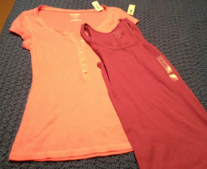 I happened to be lucky enough to be chosen for this one! Woot! I hope many of you have been as well. I took my sister and we both got one of their henley tees and a tank top — really, summer is coming and you can NEVER have too many tanks right?! Of all the items at Old Navy, I think their tanks are my favorite actually. I’ve been getting them for years and I love that they are thick enough to feel comfy wearing them by themselves. My only complaint would be they tend to stretch out, so I normally snag a small instead of a medium to make up for that. This year it seems that they have changed that a bit size wise, so I actually grabbed a medium.