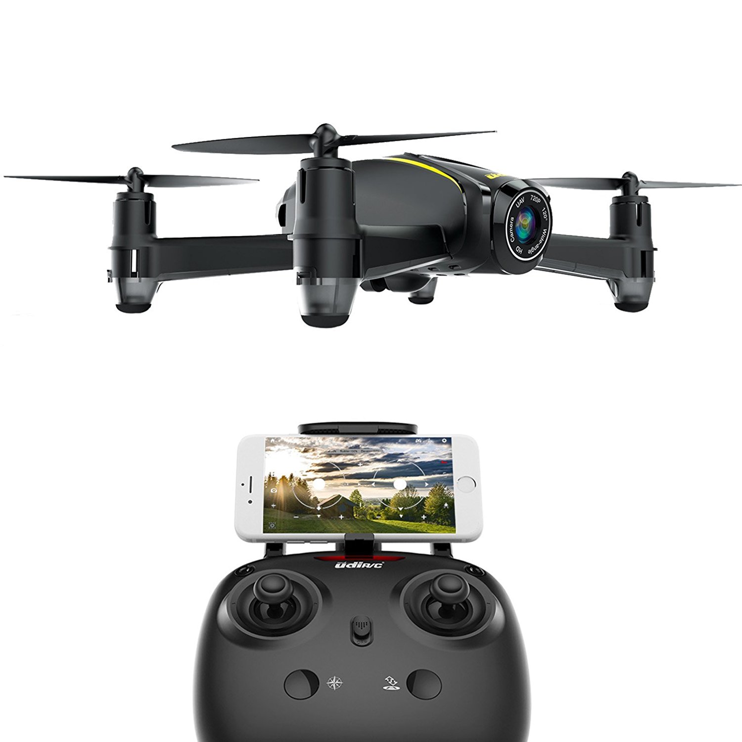 This kid- friendly drone is perfect for beginners as it features a one-button take off, out of range alarm, and an emergency stop button. Equipped with a 120 degree wide-angle 720P HD camera, this drone will help you capture every moment.