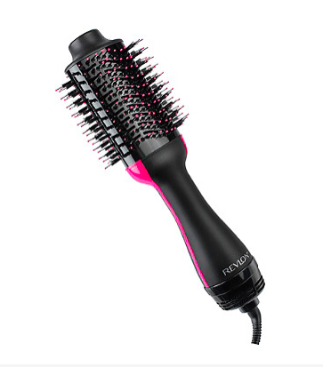 The Revlon One-Step Hair Dryer and Volumizer has an oval brush design that quickly creates volume at the root and full-bodied curls at the ends.