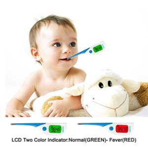 This thermometer reads your temperature in only 8 seconds and is designed for oral, armpit and/or rectal use. It can be easily read in the dark with a large LCD display and back light design. Plus it comes with a one year warranty and a 30 day no hassle refund guarantee!