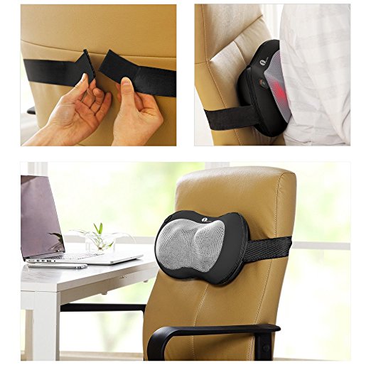 This pillow massager offers a heat function and features four deep-kneading Shiatsu Massage nodes to help you relax and relieve muscle tension. It is perfect for your neck, upper and lower back, shoulders and legs and can be used in the car, office or at home.