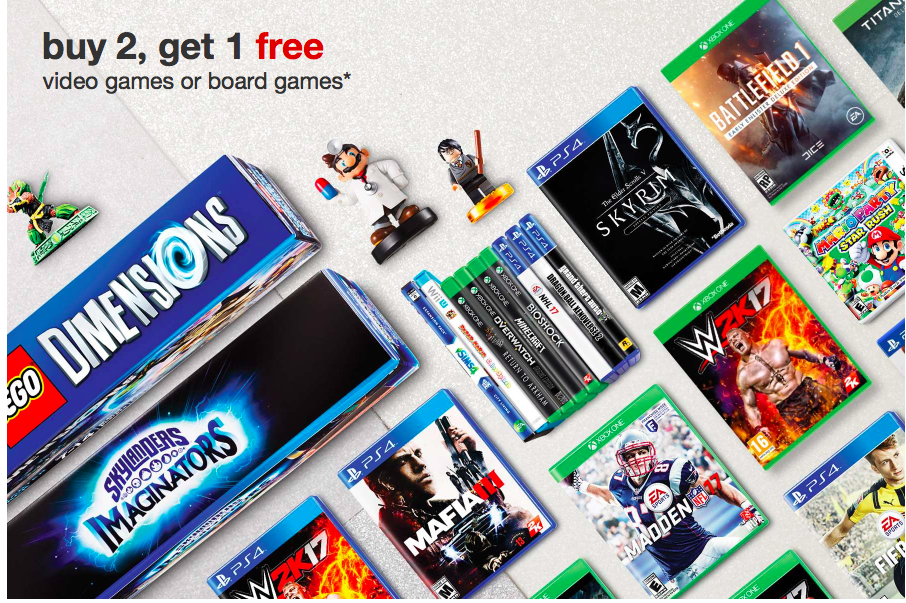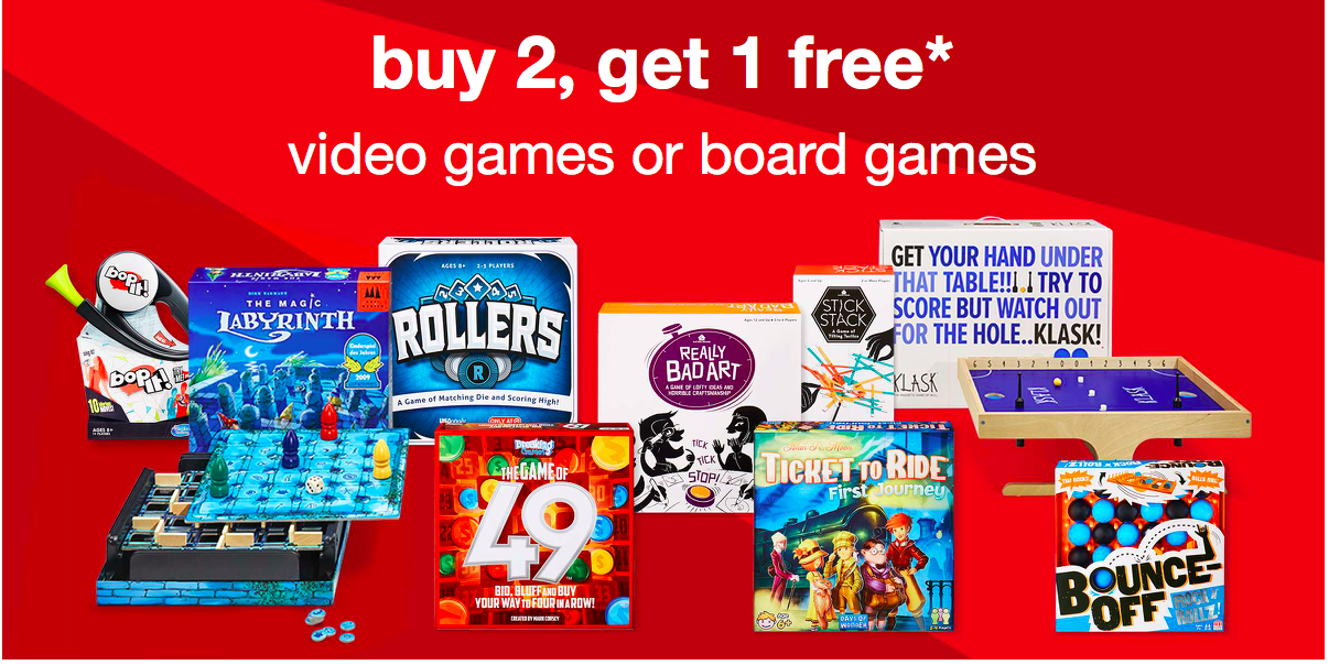 Now through November 5th, head to Target where they are offering Buy 2 Get 1 Free Video Games and Board Games!