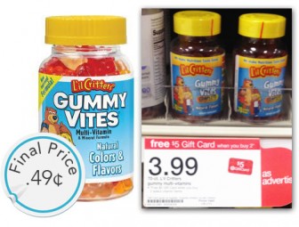 Work this deal at Target and save big! You can pick up Lil’ Critters Gummy Vites for only $.49 a bottle!