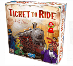 Designed for 2-5 players, the object of this train board game is to see who can travel by rail to the most cities in North America in just seven days. There are 225 colored train cars and players have to collect cards that allow them to use the different railway routes connecting the cities across the USA.