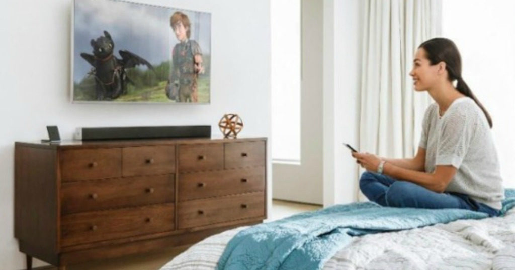This 38-inch soundbar allows you to use your mobile device as a remote control to browse content wirelessly, and also uses Dolby technology for rich sound.