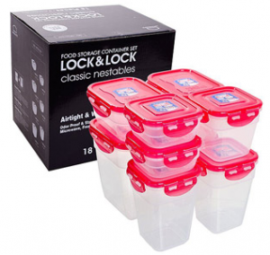 Walmart.com has the 18-piece Nestable Lock & Lock Food Storage set — they even have FOUR colors to pick from too; Green, Red, Blue and Purple!