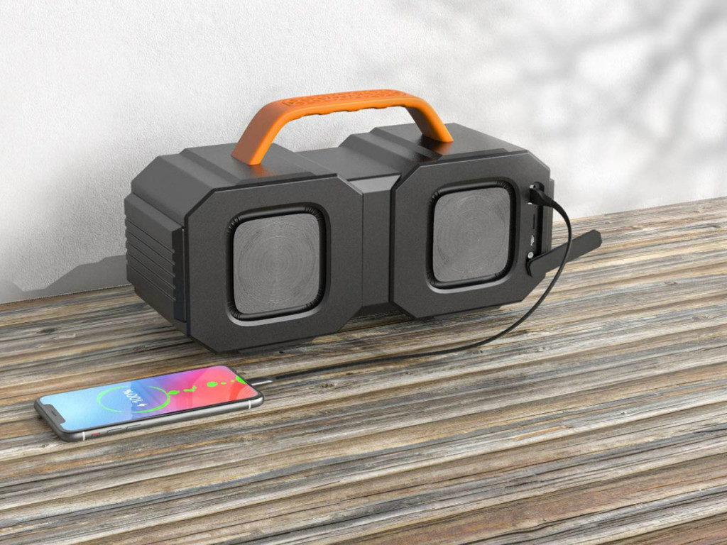 This speaker is waterproof and features a strong shock-absorbing shell, frame and handle so it can be used both indoors and outdoors. It will also connect to any devices and playlists so you’ll have continuous sound in any situation. You can get up to 2,400 minutes of playback time on a full-charge AND you can even use it to charge your tablet and smartphone.