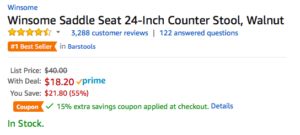 Head over to Amazon where you can get a Winsome Saddle Seat 24-Inch Counter Stool for just $15.47 when you clip the 15% off coupon found under the price!