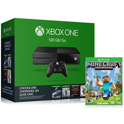 This bundle includes the Xbox One 500GB Console, one Wireless Controller and the Minecraft video game.